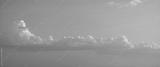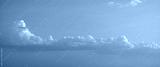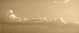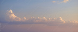 Soft pastel sky with fluffy cumulus clouds illuminated by warm evening light, calm atmospheric landscape, minimal background, peaceful mood, natural weather scene