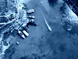 Blue Lagoon on Comino Island, Malta - aerial drone view