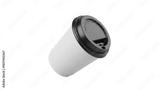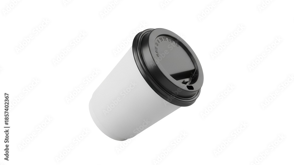 Disposable coffee cup with black lid isolated PNG on transparent background, blank paper cup for hot drinks and beverages mockup