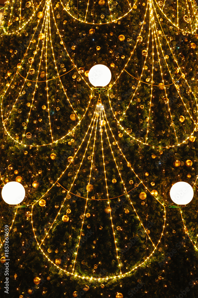 Cascading Golden Light Drapery With Glowing Globes, Luxury Event Lighting Evoking Chandelier Effect, Delicate Strands Form
