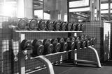Dumbbells Neatly Arranged on Gym Rack Photo
