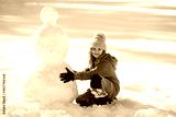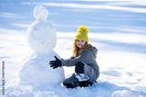 Kid in winter clothing playing in snow. Playful child enjoying outdoor winter recreation. kid spending time building snowman. Cute kid enjoying winter. Kid creating snowman outdoor.