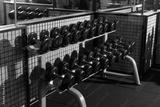 Dumbbells Neatly Arranged on Gym Rack Photo