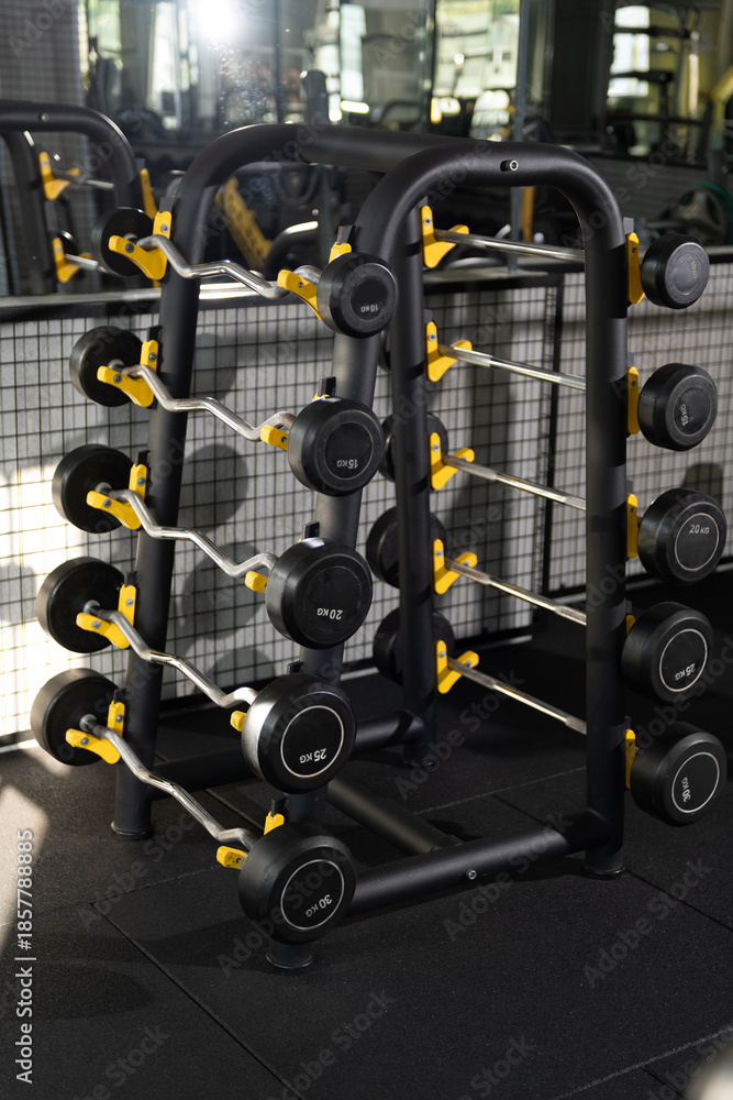 Straight and Z Bars Arranged from Large to Small on Gym Rack