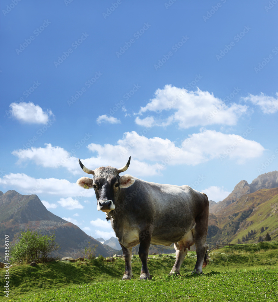 Bergweide mit Kuh im Stubaital, Tirol,Oestereich.