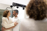 Middle aged couple sharing intimate moment in bathroom