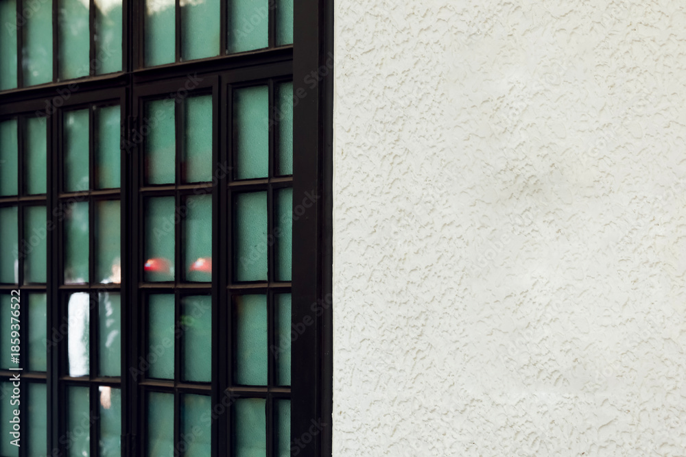 green window on a wall