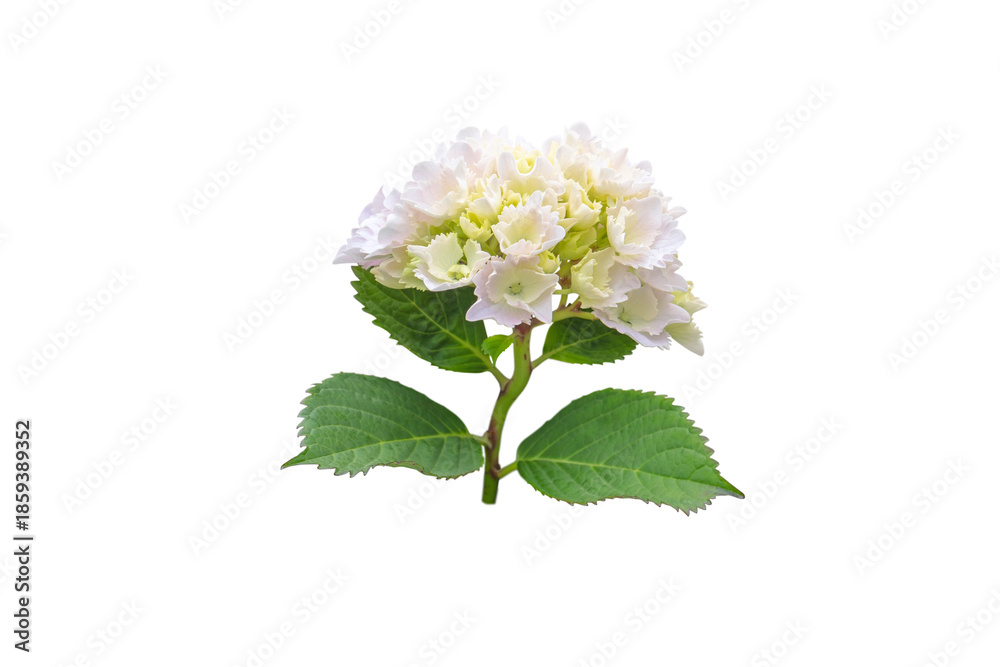 Pink yellow hydrangea macrophylla bud on branch isolated transparent png
