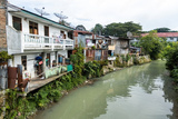 Poor houses along the river of canal in North Sumatra Indonesia