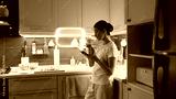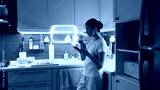 Woman cooking in modern home kitchen guided by intelligent digital assistant. Concept of AI home cooking, digital guidance, healthy lifestyle, smart tech, everyday domestic routines.
