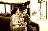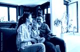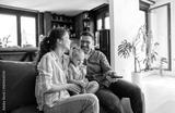 Portrait of mother, father and daughter having fun holding a remote control and watching tv together at home, family life, parenting, love and bonding concepts