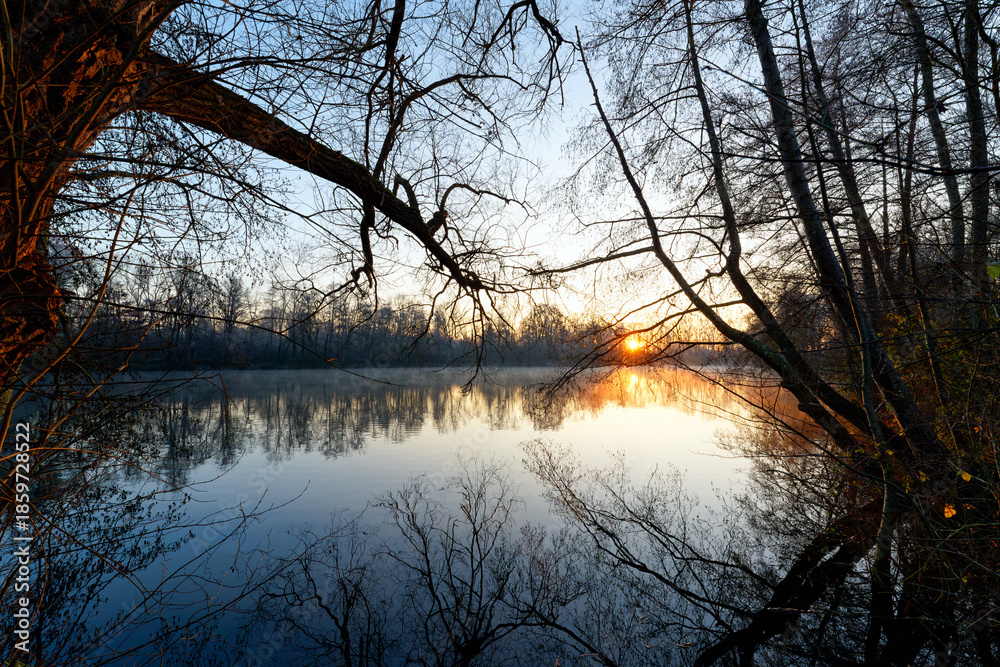 The Varennes ponds in Souppes-sur-Loing village. Île de France region
