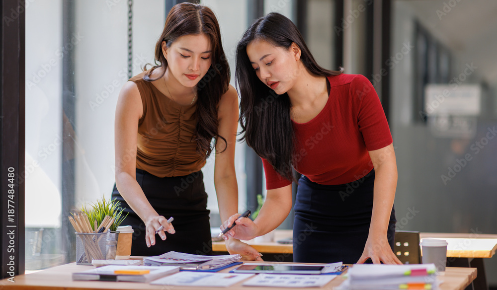 Two businesspeople shaking hands after a deal contract is done.