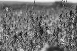 Sunlit soybean field full abundance rows of mature plants with hanging pods, expansive shallow focus, warm horizon, rural landscape, seasonal yield, sustainable farm imagery