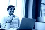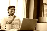 Man, portrait and laptop in office for trading, crypto finance or smile for update in stock market news. Trader, computer or online in agency for business development, investment opportunity or email