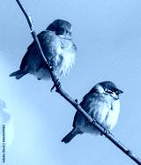 Two birds are sitting on a branch