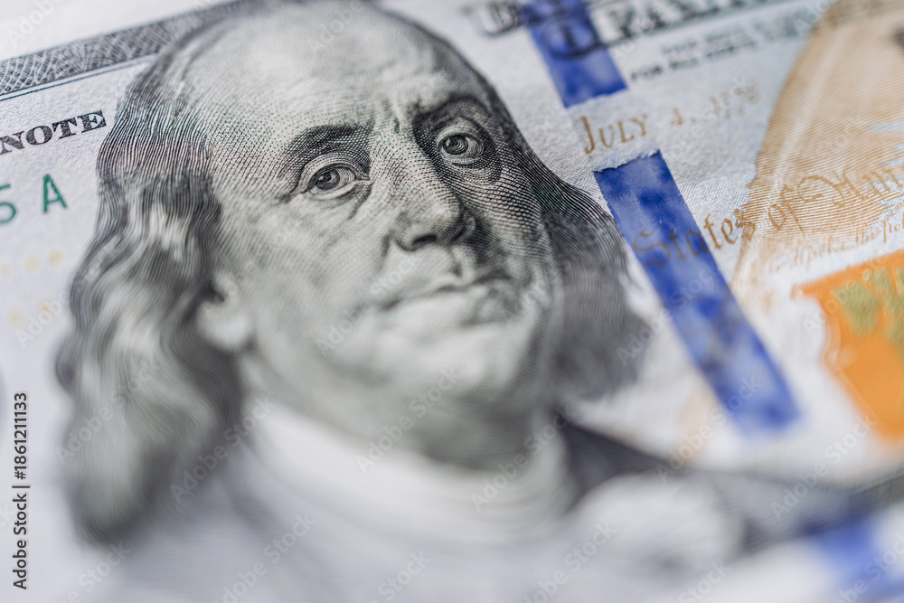 Close-up view of a detailed banknote featuring intricate designs, showcasing the prominent figure and vibrant colors, representing currency and financial transactions in modern economy