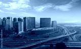 The intersecting highways and modern buildings in the city