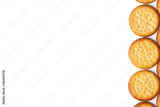Mini round cheese biscuit savoury snacks on a white background