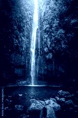 Famous 25 Fontes Waterfall in the green forest, Madeira Island