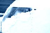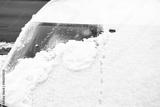 Зима. Стекло легкового автомобиля засыпано снегом после снегопада