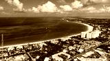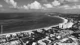 Grace Bay Beach At Providenciales In Overseas Territory Turks And Caicos Islands. Caribbean Skyline. Beach Landscape. Highrise Buildings. Grace Bay Beach In Turks And Caicos Islands. Nature Background