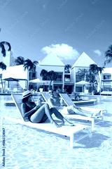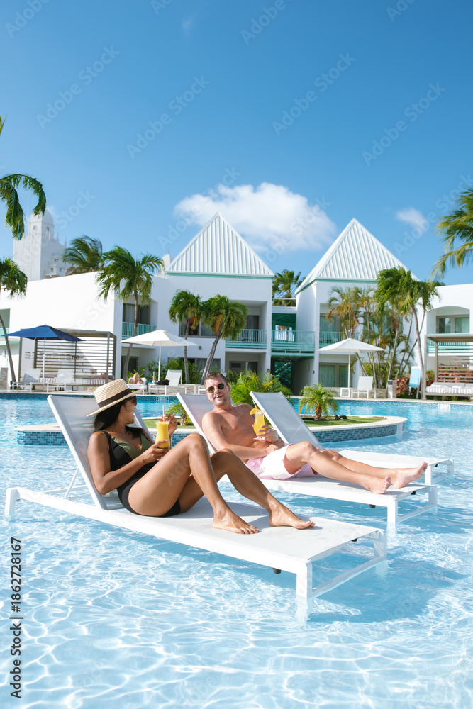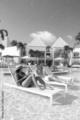 Relaxing in the sun by the turquoise pool in Arubas paradise resort