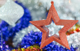 Merry Christmas and Happy New Year festive card. Christmas fir tree decoration . Holiday composition. Festive background