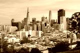 San Francisco Skyline in Pink and Blue Skies. Ina Coolbrith Park, San Francisco, California, USA.