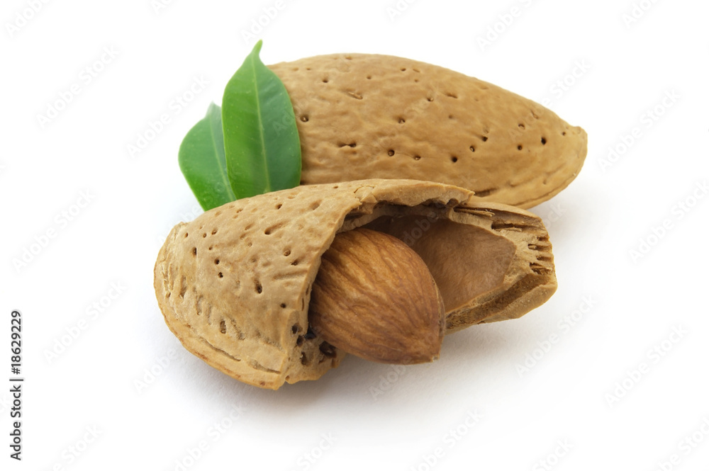 Almonds with leaves