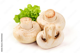 Agaricus Mushrooms with Lettuce, isolated on white background