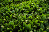Fresh green beet plants growing across wide agricultural fields, healthy leafy crop under blue sky, modern agriculture, food production, rural farming scene