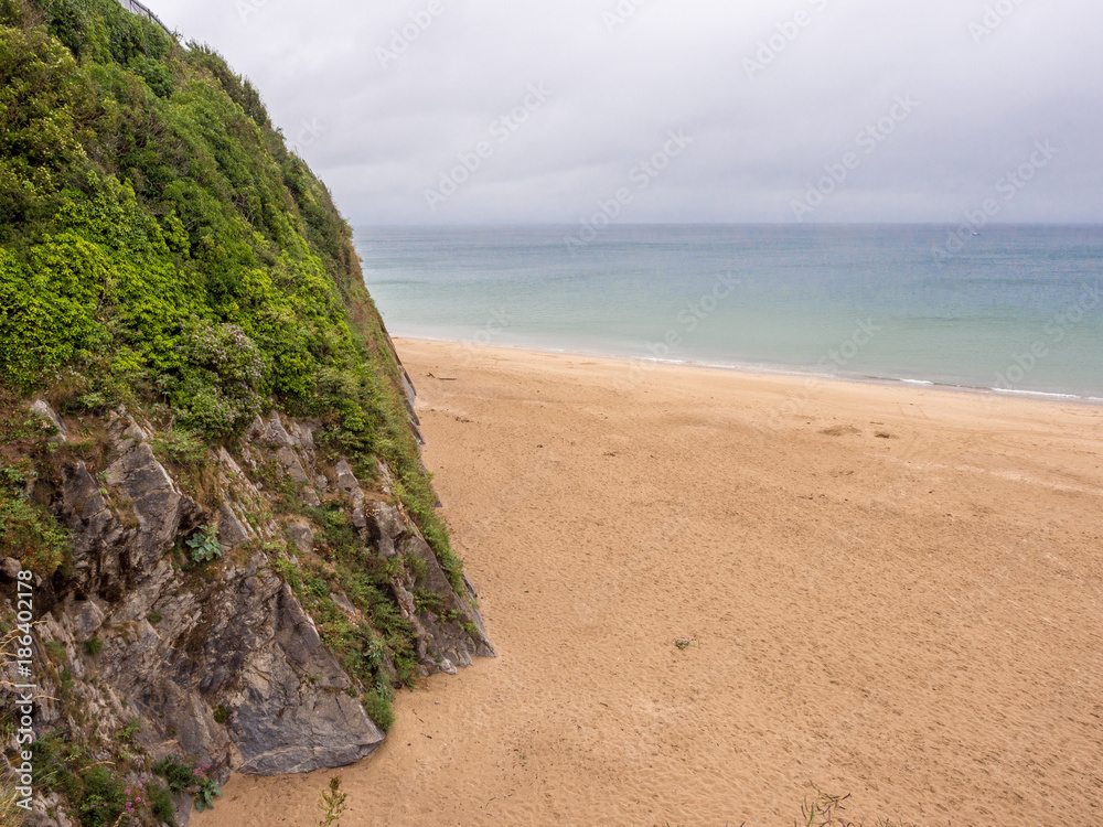Rocks and coastline at Tenby South Beach, Tenby, Wales, Uk