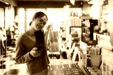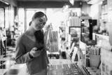 Asian woman shopping at local coffee shop, holding takeaway order while paying with smartphone. Authentic lifestyle, small business storytelling, and consumer experience content.