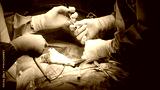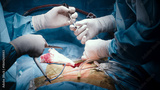 Surgical team performing intricate procedure in operating room, showcasing precision instruments and sterile environment, emphasizing teamwork and medical expertise in action