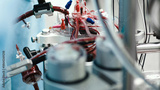 Advanced surgical equipment in an operating room, showcasing intricate machinery and tubes, highlighting the precision and technology used in modern medical procedures