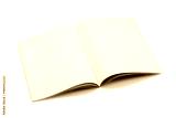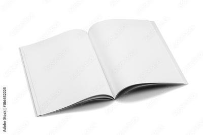 Mock-up magazine, book or catalog on white table. Blank page or notepad on solid background. Blank page or notepad for mockups or simulations.
