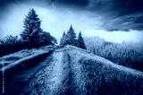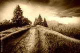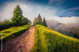 Misty summer scene of Carpathian mountains with old country road, Stebnyi village location, Ukraine, Europe. Attractive morning view of mountain pasture. Beauty of countryside concept background.