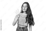 Teenager girl over isolated chroma key background happy and counting four with fingers