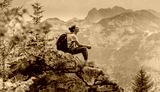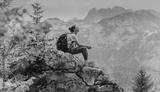 Woman Viewing Mountain Range and Forest Landscape During Hike or Adventure in Nature