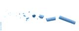 Broken blue chalk with pieces flying, isolated on white background, clipping path, design