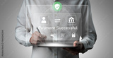 Successful transaction message showing secure payment. Payment confirmed, secured, payment processed, and payment completed with trust and transaction integrity. Vouch