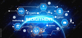This image illustrates the dynamic world of recruitment, showcasing digital connections and elements related to hiring, interviews, and workforce management. Tessel