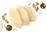 Raw chicken, fillet, isolated on white background. Top view. Flat lay