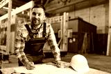 Construction of modern modular houses. An architect works with building plans