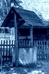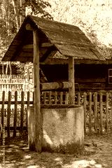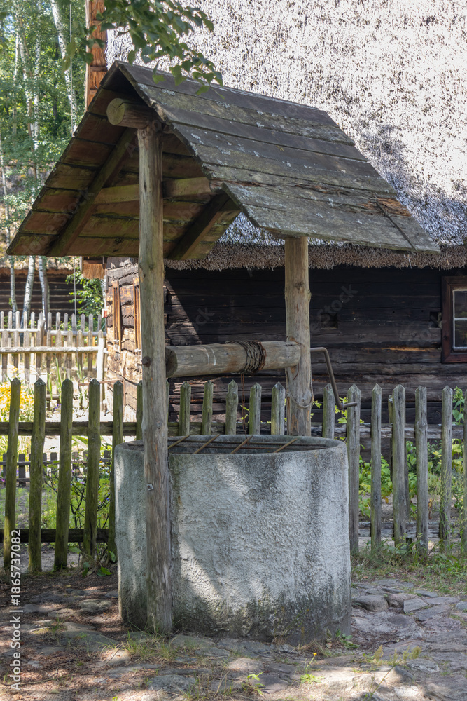 Old well with a winch in the village