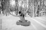 Naked man in snow, enjoying winter time in nature.