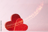 Two red hearts rest side by side with golden sparkles on a pink background, symbolizing romance, passion, and the magic of Valentine's Day love.