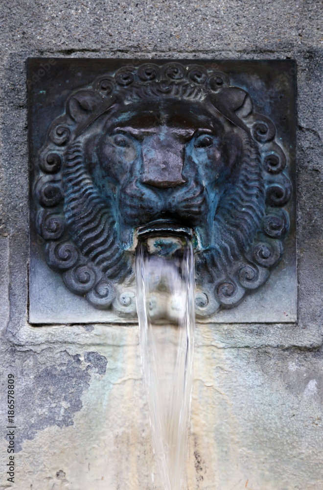 The lion head medieval fountain in Italy