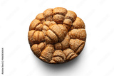 Close-up of fresh festive artisan homemade round bread in Bulgaria. Bulgarian tradional holiday pull apart bread pitka